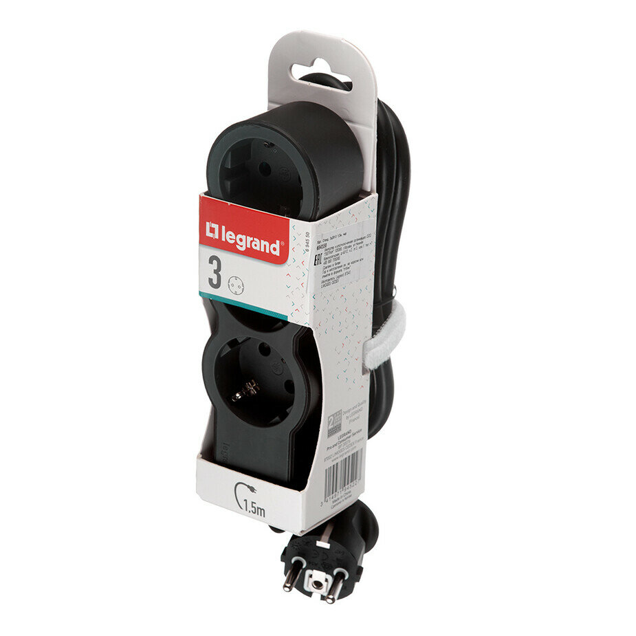 Удлинитель с поворотным основанием серии Комфорт 4 x 2К+З с кабелем 1,5 м., цвет: черный, LEGRAND 694530 (1 шт.)