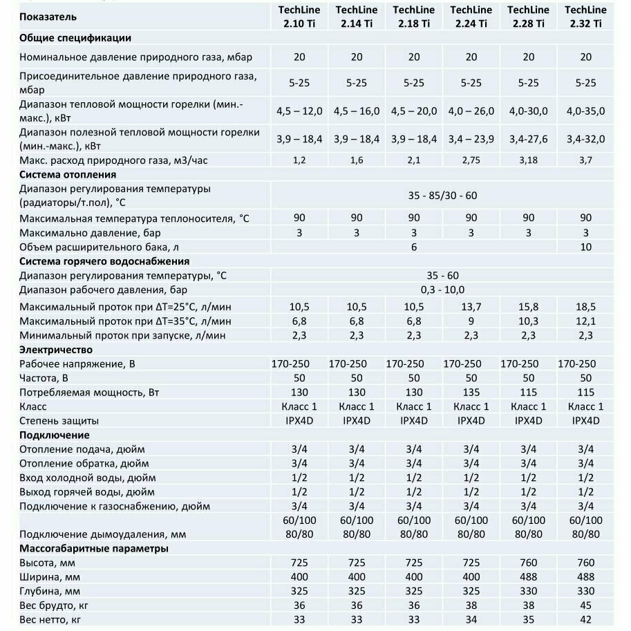 | Номинальное давление природного газа (мин.) | 5 мБар |