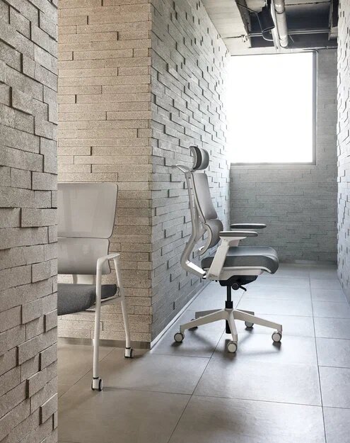 Эргономичное кресло FALTO G-1 GON 01WAL/GY-BL (Каркас белый, спинка серая, сидение синие)