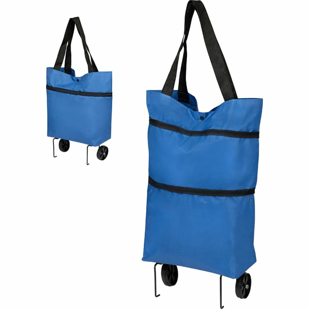 Сумка-тележка складная на молнии синего цвета, размер 53*39*13 см Грузоподъемность: 10 кг
