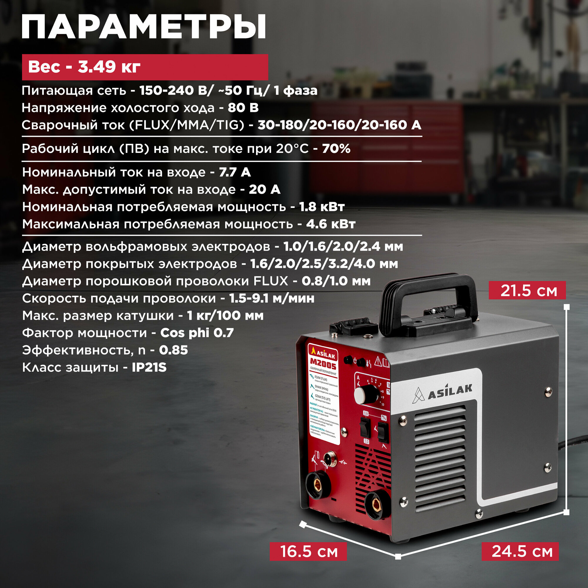 Полуавтомат сварочный ASILAK M2005 (FLUX/MMA/TIG LIFT) AS1570-6 интересное: