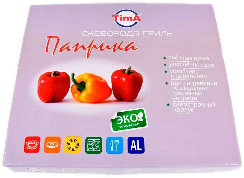Сковорода гриль со съемной ручкой 28x28см TIMA/биол Паприка с антипригарным покрытием Greblon C2+ Лопатка в подарок интересное: