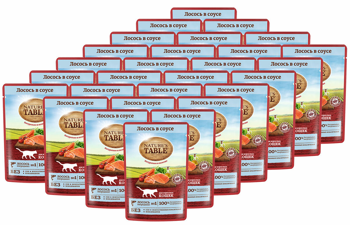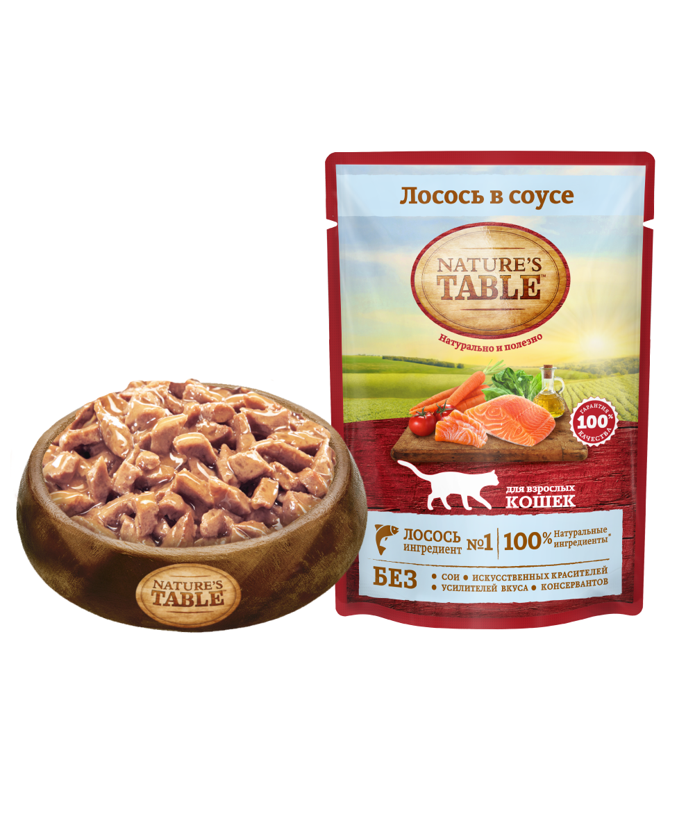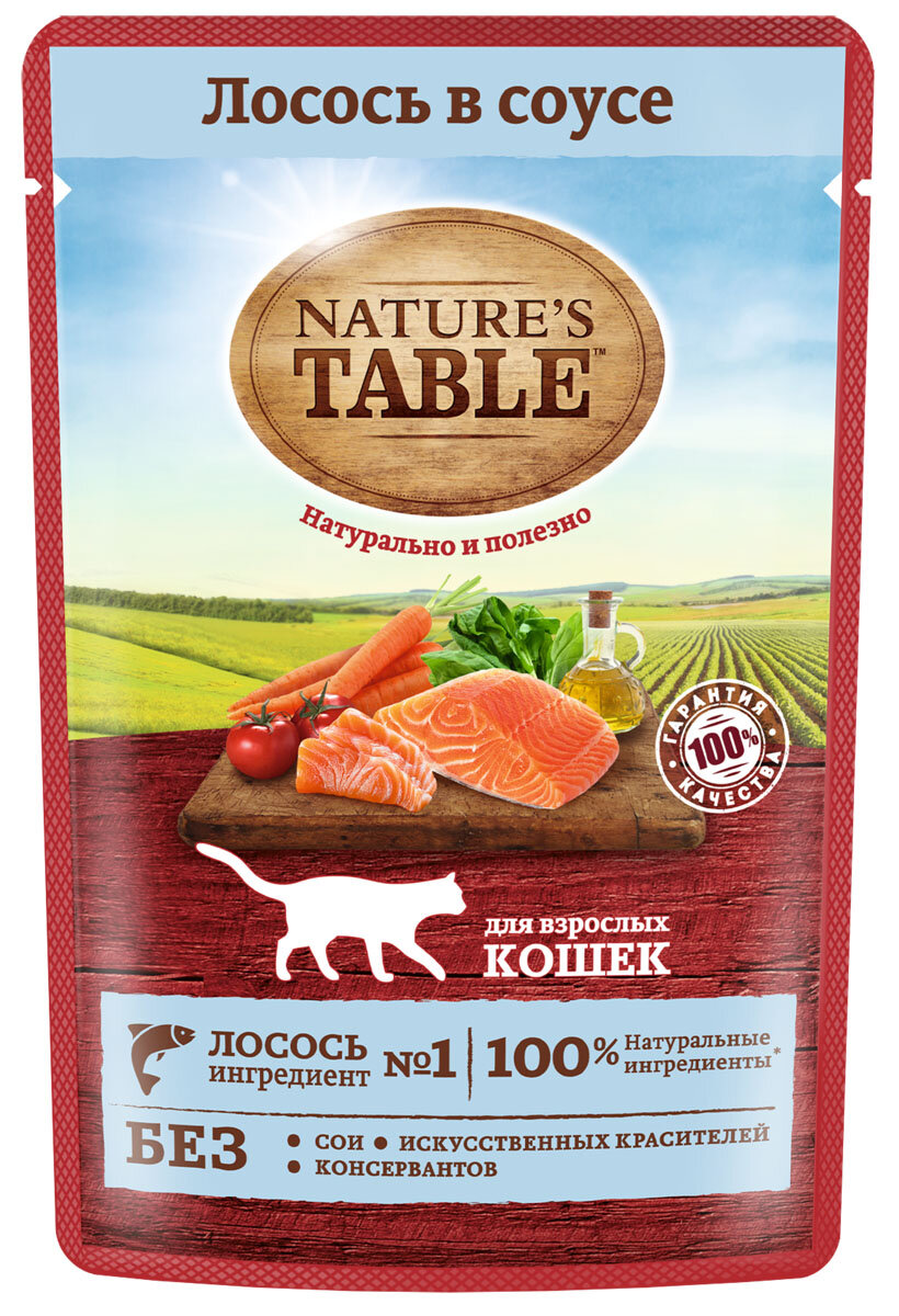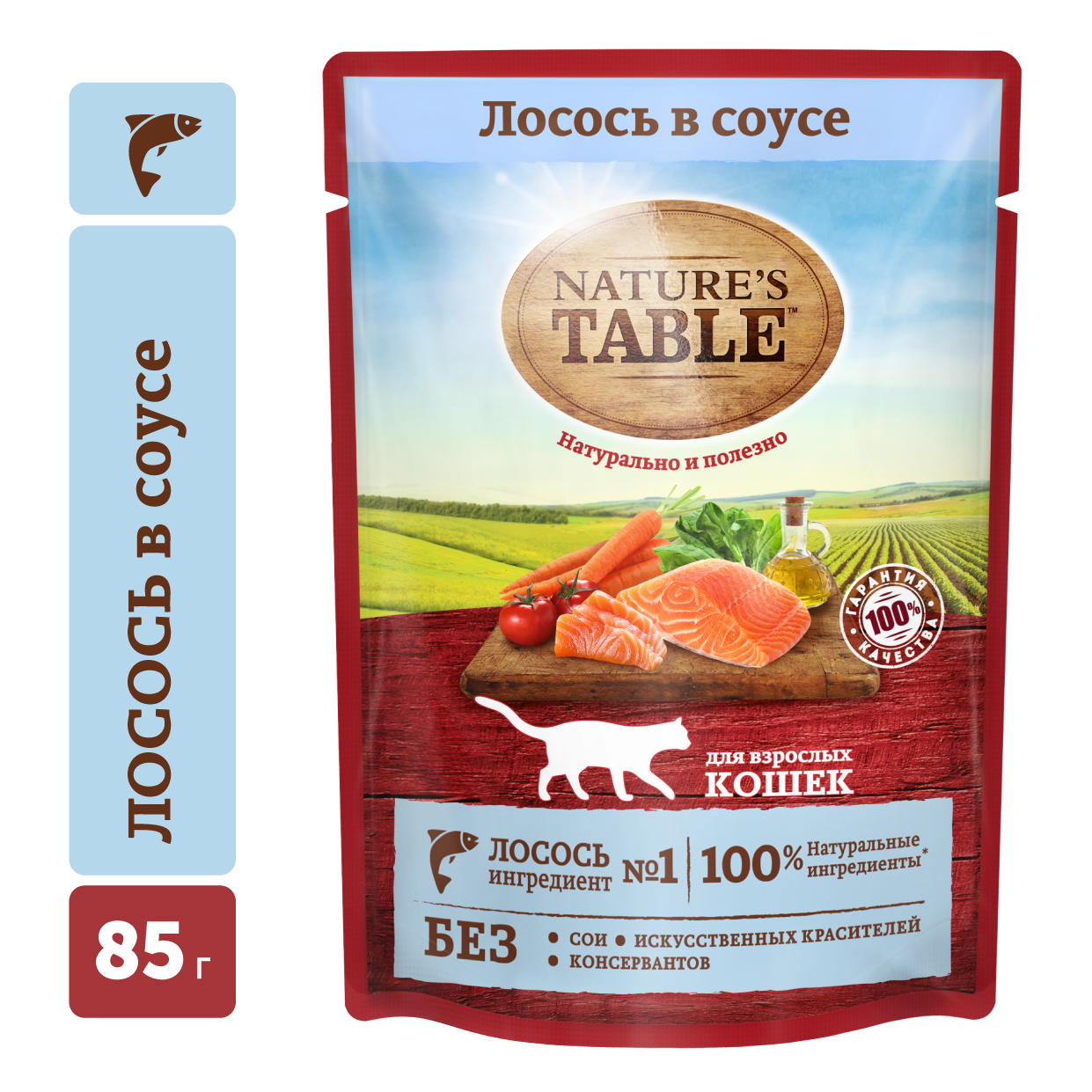 NATURE'S TABLE для взрослых кошек с лососем в соусе пауч 85 гр NEW 85 гр х 4 шт