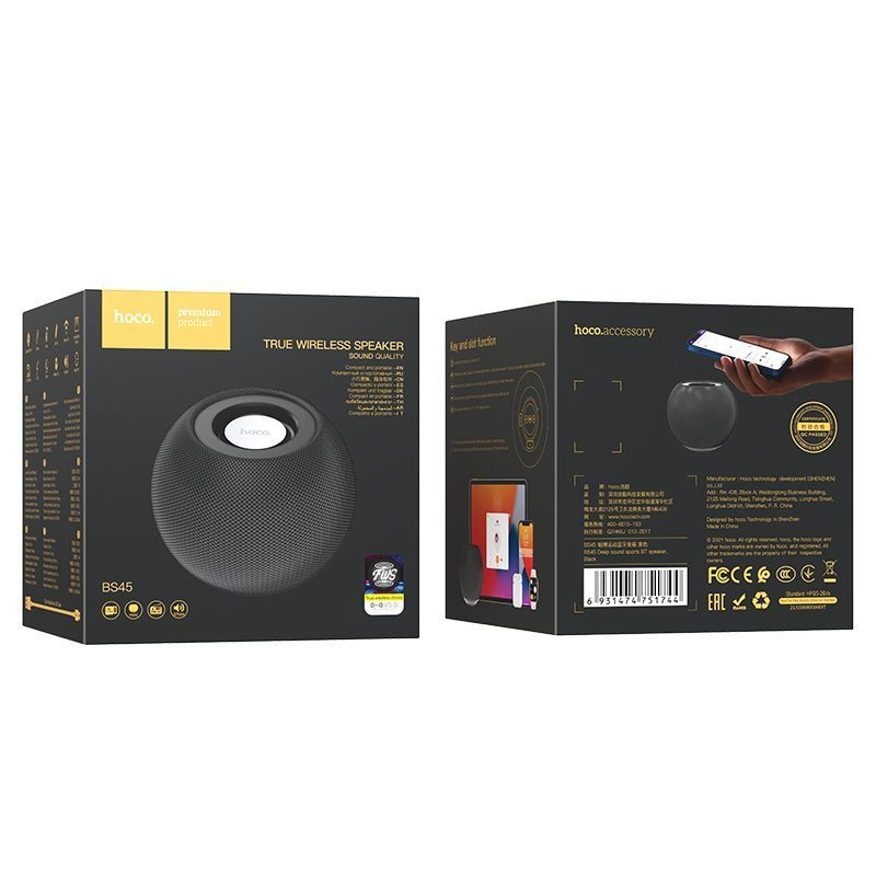 Портативная колонка Hoco BS45 Deep Sound, 500мАч, динамик 5Вт, BT 5.0, MicroSD, FM, TWS, черная