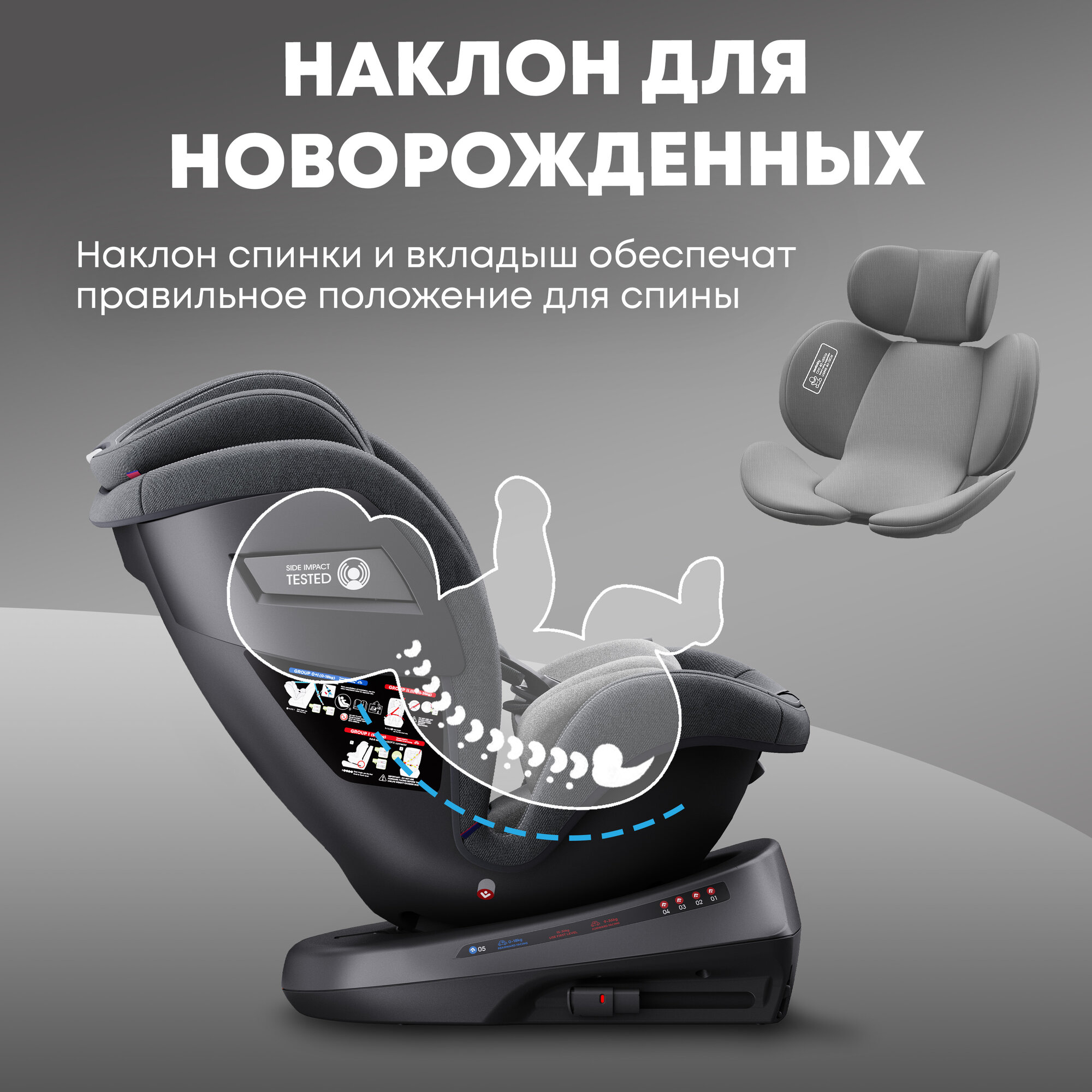 | Группа | 0/1/2/3 (до 36 кг) / рост от 45 до 150 см |