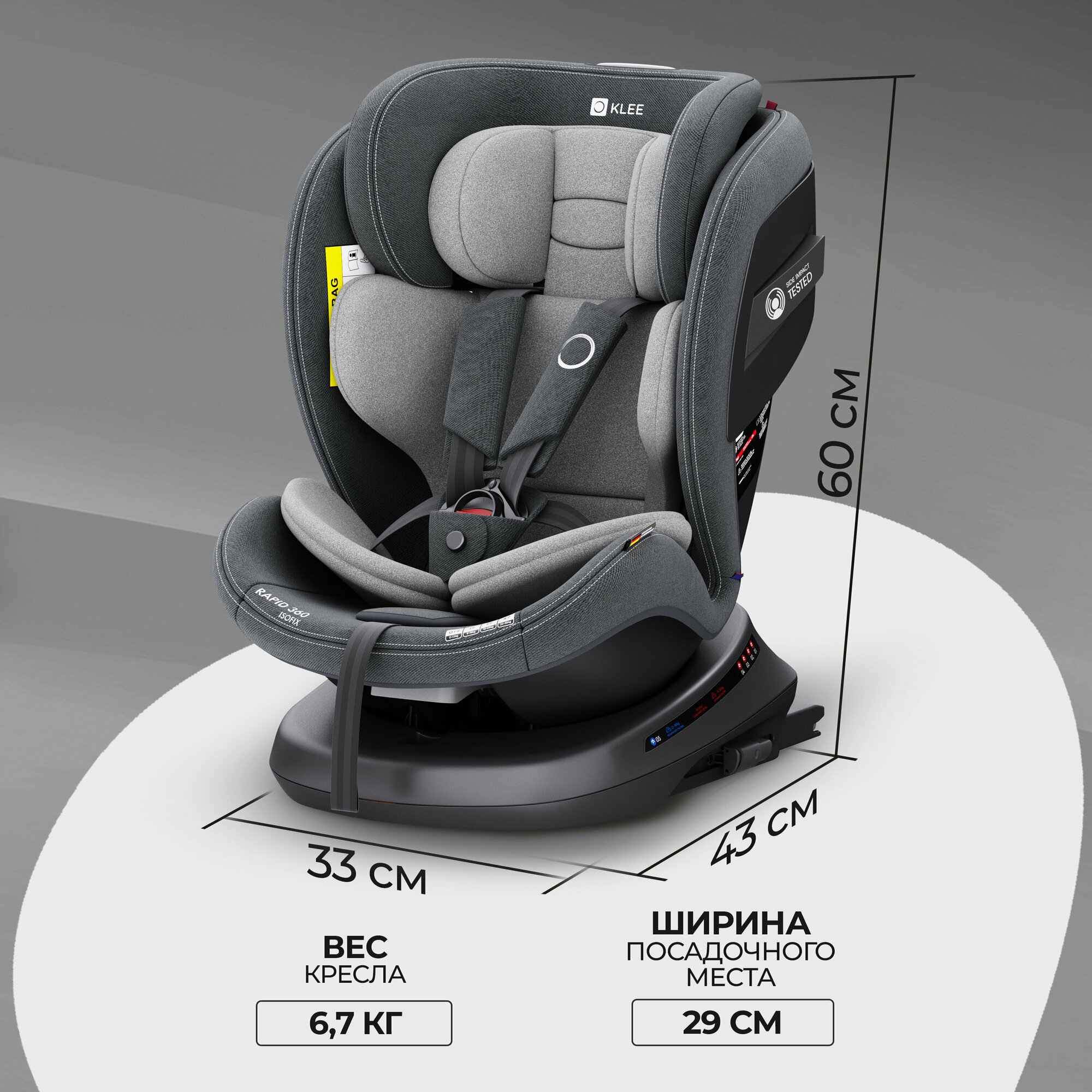 Купить KLEE Rapid 360 Fix поворотное детское автокресло с рождения до 36 кг с Isofix Titan Grey