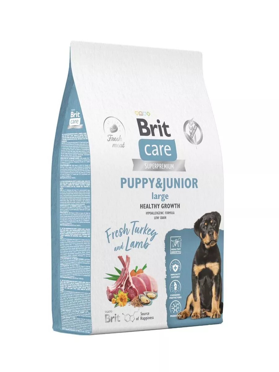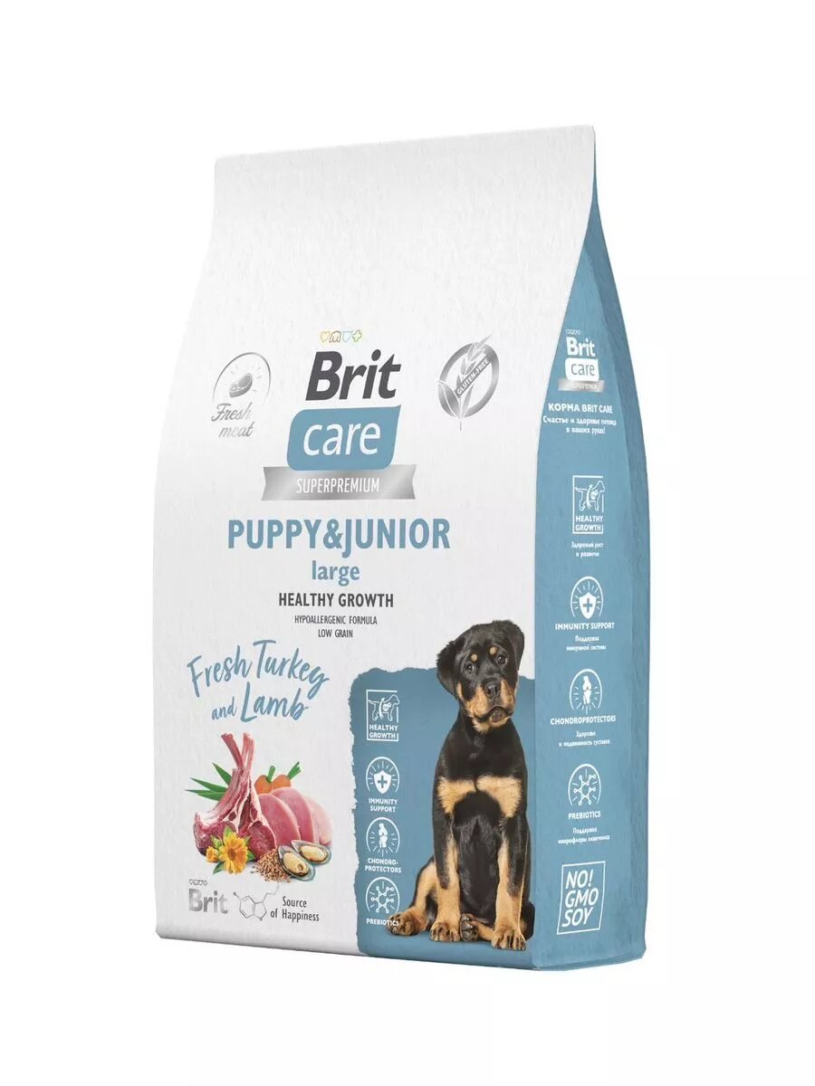 Сухой корм для щенков и молодых собак крупных пород супер-премиум с индейкой и ягненком "Dog Puppy&Junior L Healthy Growth" BRIT CARE1,5 кг