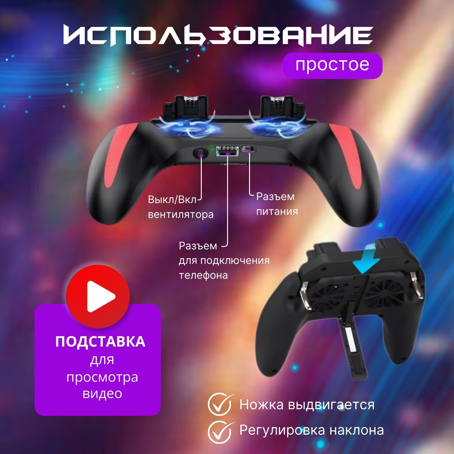 | Подробная комплектация | шнур, напальчники, джойстик для смартфона, зарядка для геймпада для телефона |