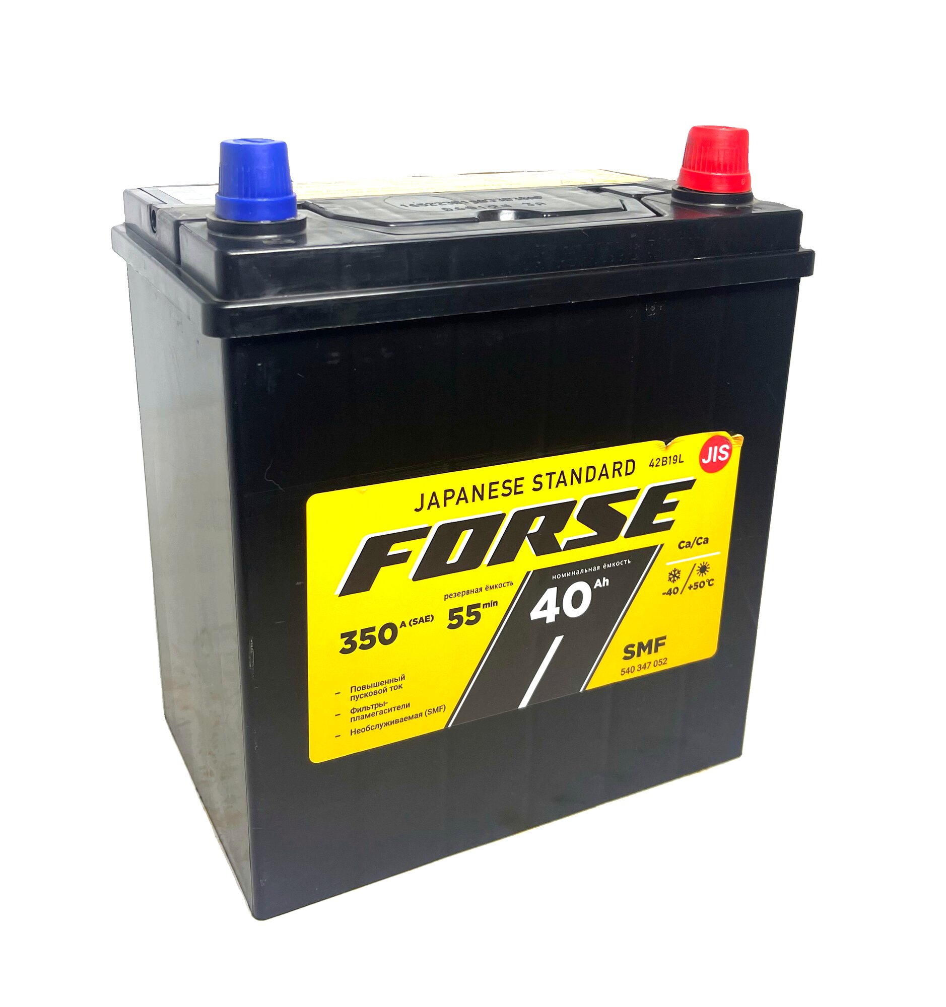 Автомобильный аккумулятор премиум класса FORSE Asia 6CT- 40 VL B19 прямая полярность