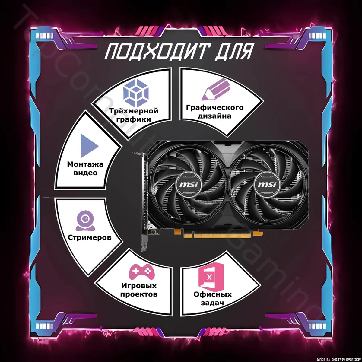| Плюсы: | Хорошая производительность, поддержка dlss решает, соотношение цена-качество превосходное. |