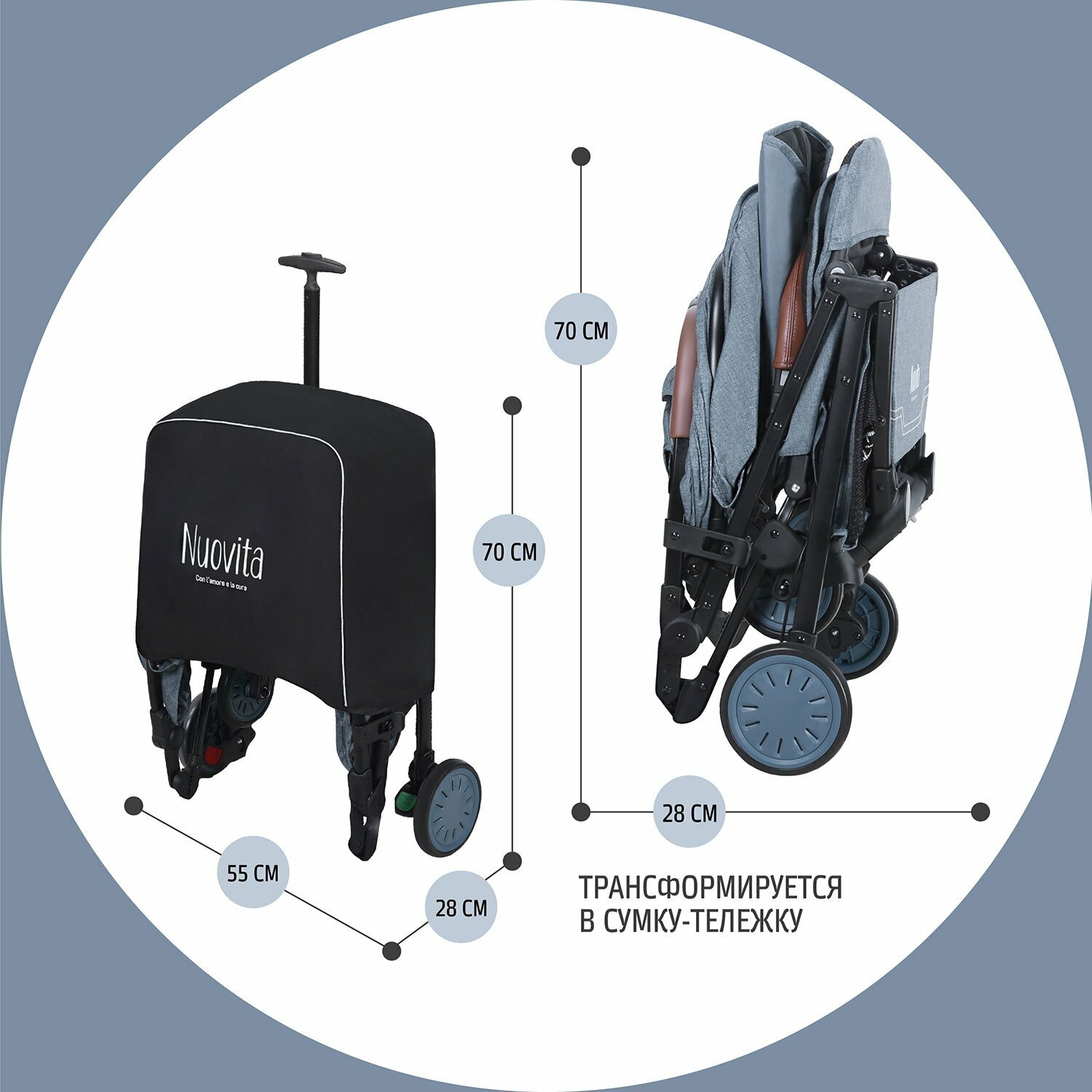 Коляска прогулочная детская Nuovita Giro Lux , складная, сумка-чехол в комплекте ( Джинсовый, Черный)