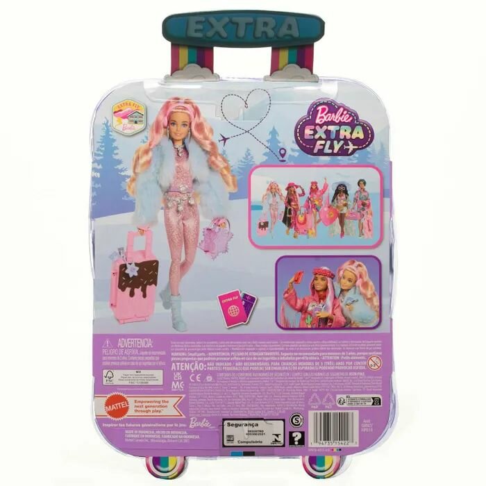 Barbie Extra Fly - кукла для путешествий в зимнем наряде и аксессуарах, 15 аксессуаров, таких как наушники, перчатки, горнолыжные очки и чехол, для детей от 6 лет, HPB16
