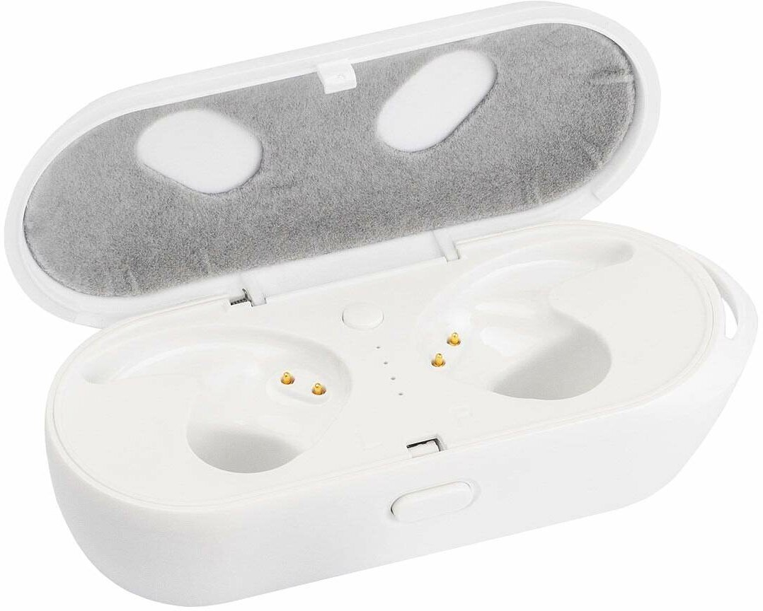 | Отзыв: | Давно хотел себе подобную модель, взял и не пожалел. Использовать их очень удобно. Сидят в ушах надежно и не выпадают, плюс их практически незаметно. Играют достойно, звук громкий и чистый, басы слышно отчетливо. В комплекте к наушникам идет зарядная станция, которая также является чехлом. |