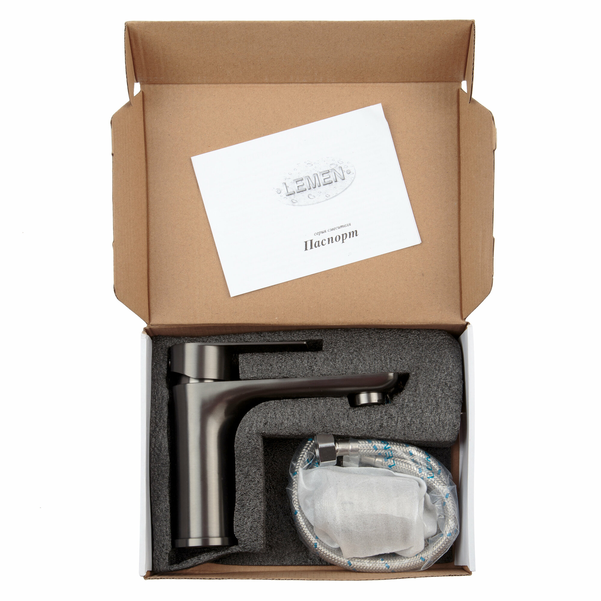 | Комплектация | Смеситель в защитном чехле, уплотнительное кольцо, прокладка, крепежная гайка с резьбовым цилиндром, гибкая подводка для горячей и холодной воды. Каждый элемент находится в защитном чехле, все элементы уложены в плотную заводскую коробку. |