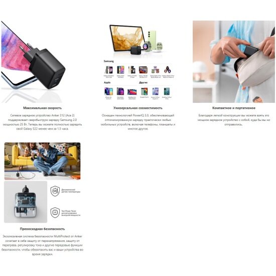 | Подробная комплектация | Сетевое зарядное устройство Anker 312; Документация |