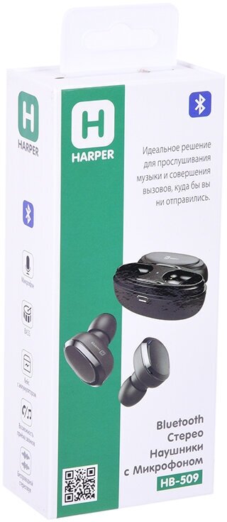 Гарнитура Harper HB-509, Bluetooth, вкладыши, черный [h00002181]