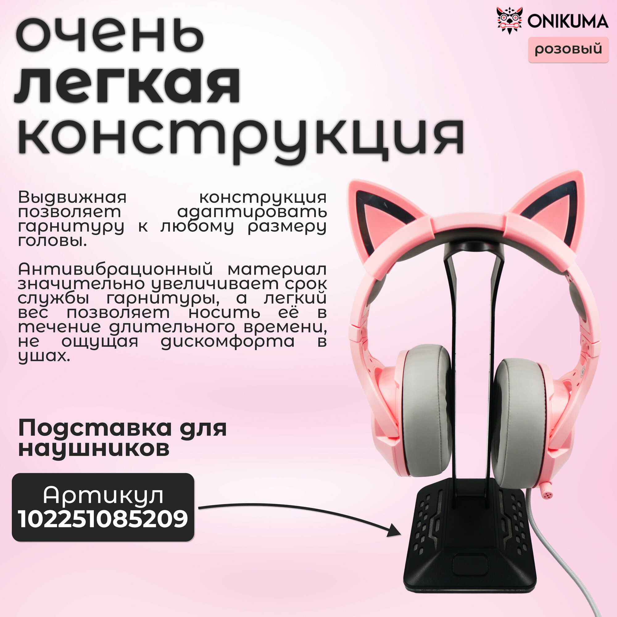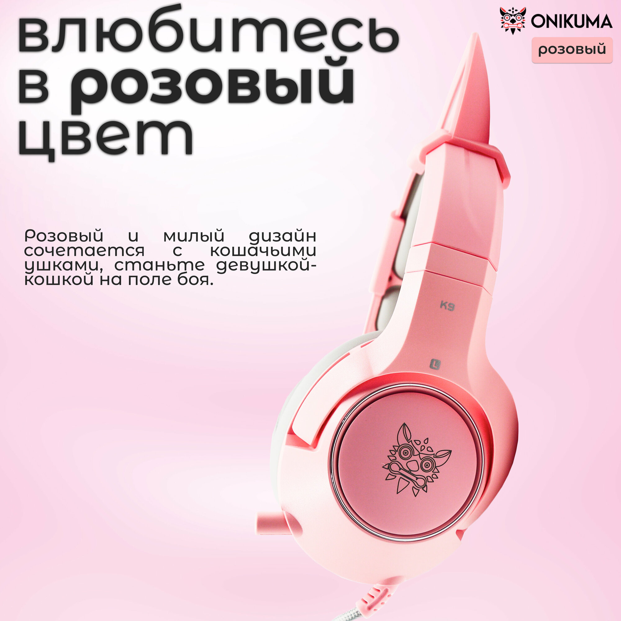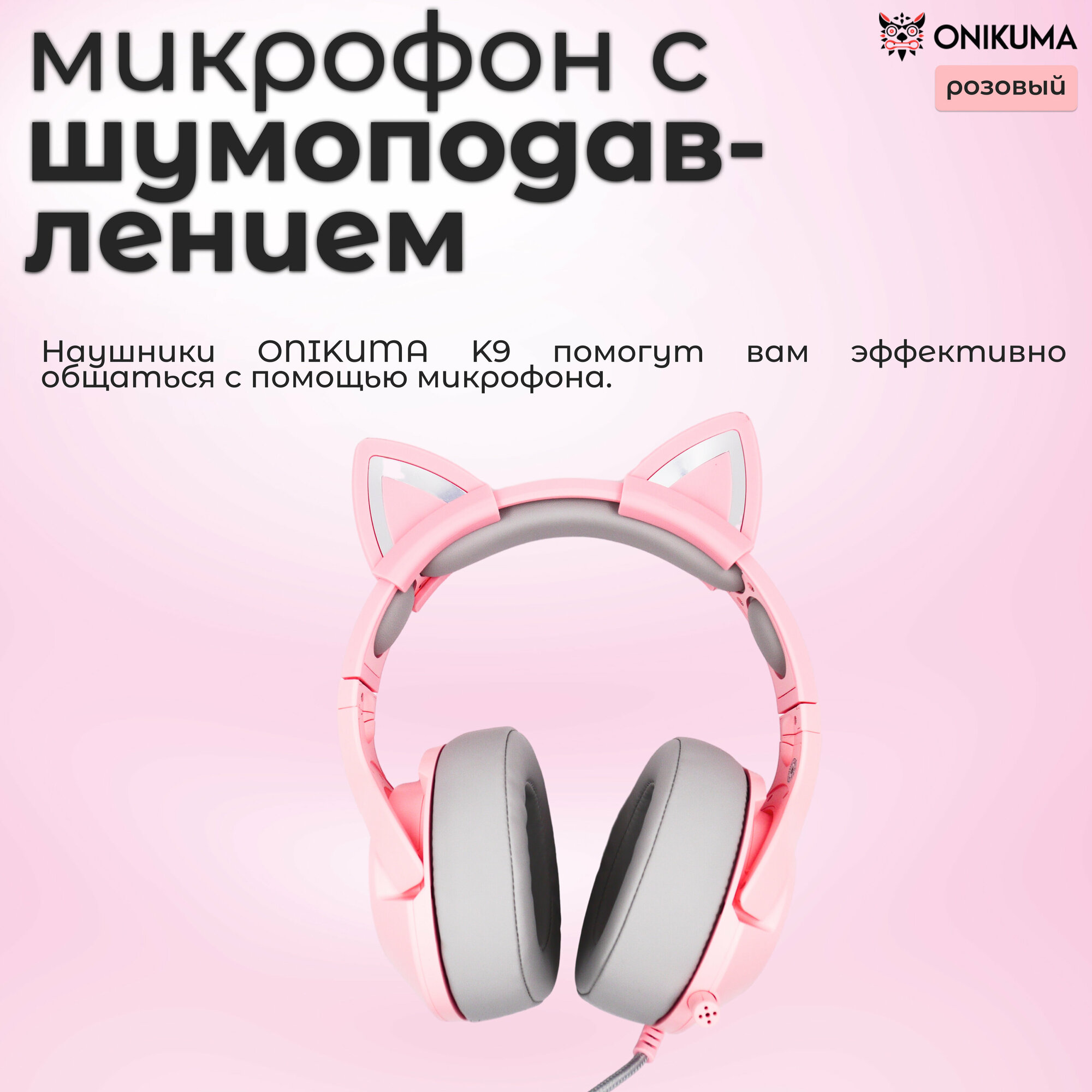 Игровые наушники ONIKUMA K9 Pink Cat розовые с кошачьими ушками и подсветкой