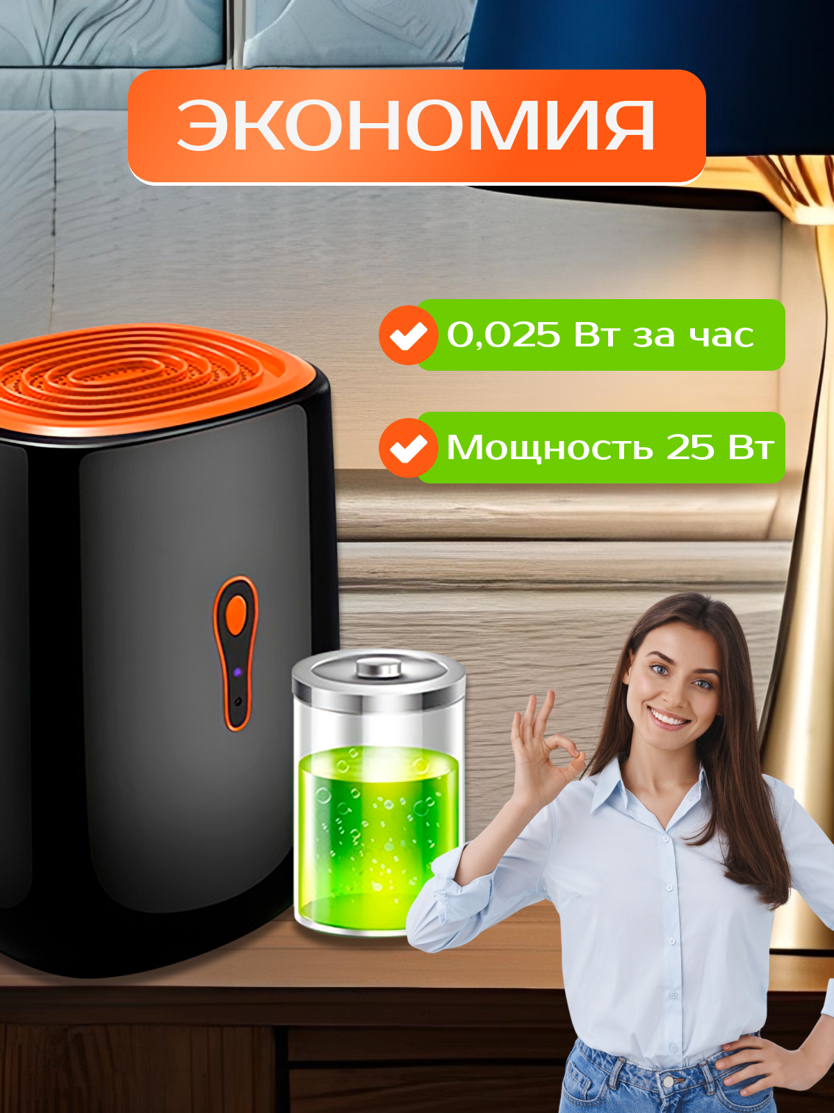 Поглотитель влаги для дома от плесени и грибка, осушитель воздуха для квартиры 25 Вт, 300 мл/24 ч, 20 кв.м.