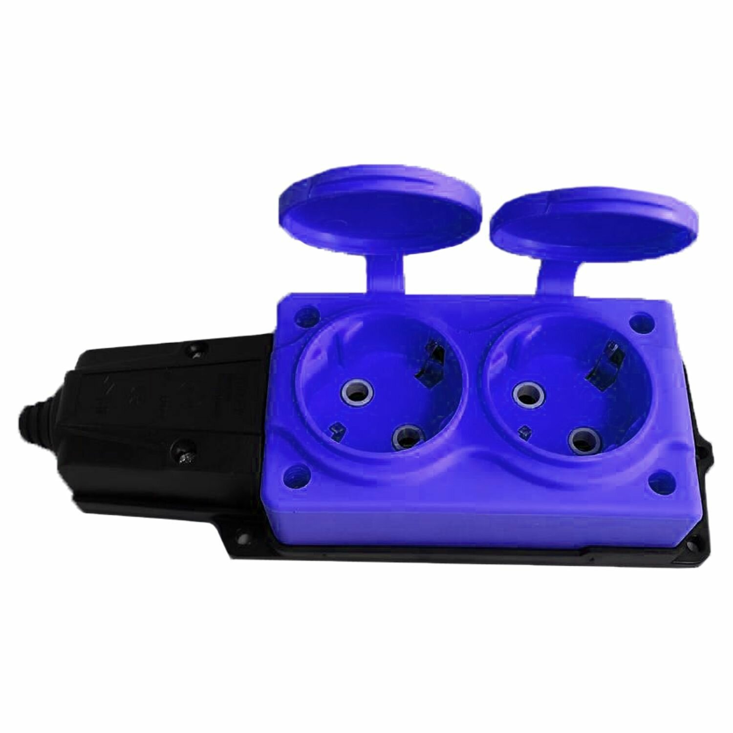 Купить Колодка электрическая для удлинителя колодка двойная NE-AD 2-нг с/з с крышками 16А, IP54, синий/черный (каучук)