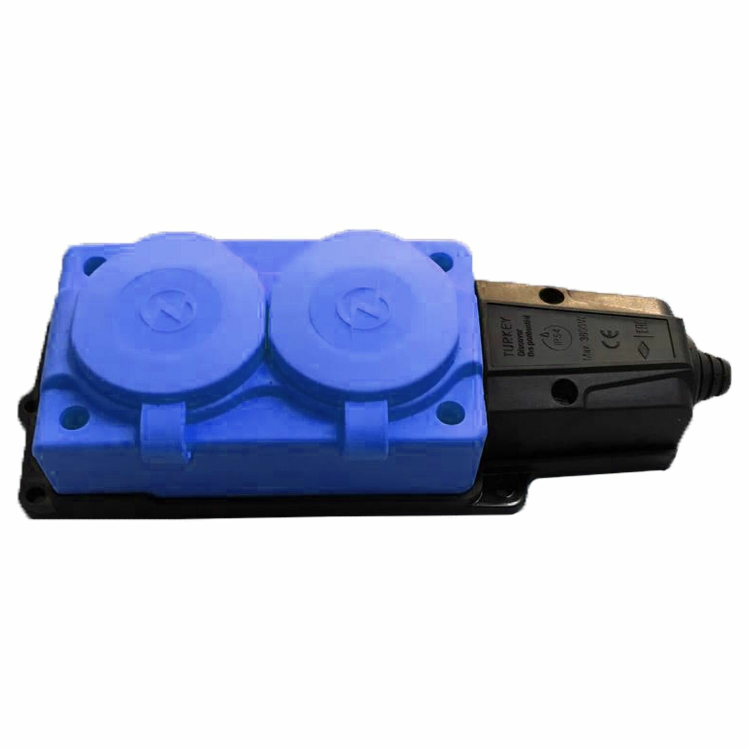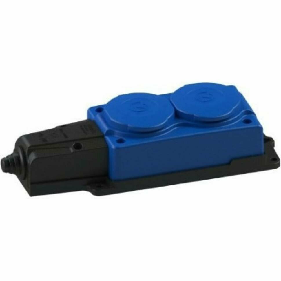 Штепсельная 2-ая розетка с крышкой каучук синяя IP54