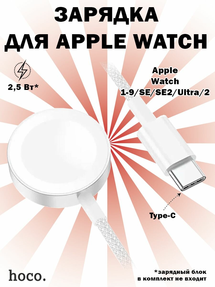 Беспроводная зарядка для Apple Watch series 1-8/SE/Ultra, Hoco CW46 c кабелем Type-C 1.2 м, Белый интересное: