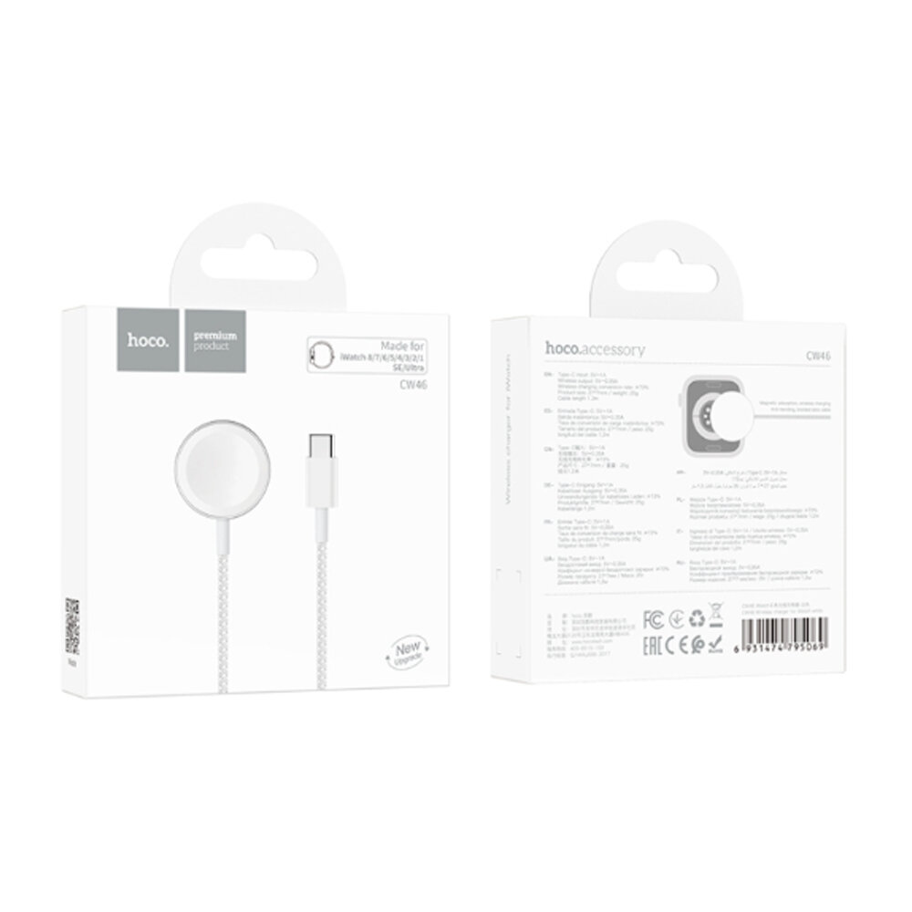 Купить Беспроводная зарядка для Apple Watch series 1-8/SE/Ultra, Hoco CW46 c кабелем Type-C 1.2 м, Белый