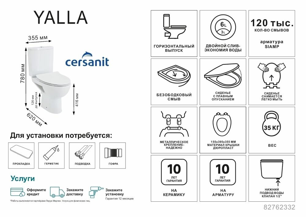 Унитаз-компакт Cersanit Yalla горизонтальный выпуск двойной слив интересное: