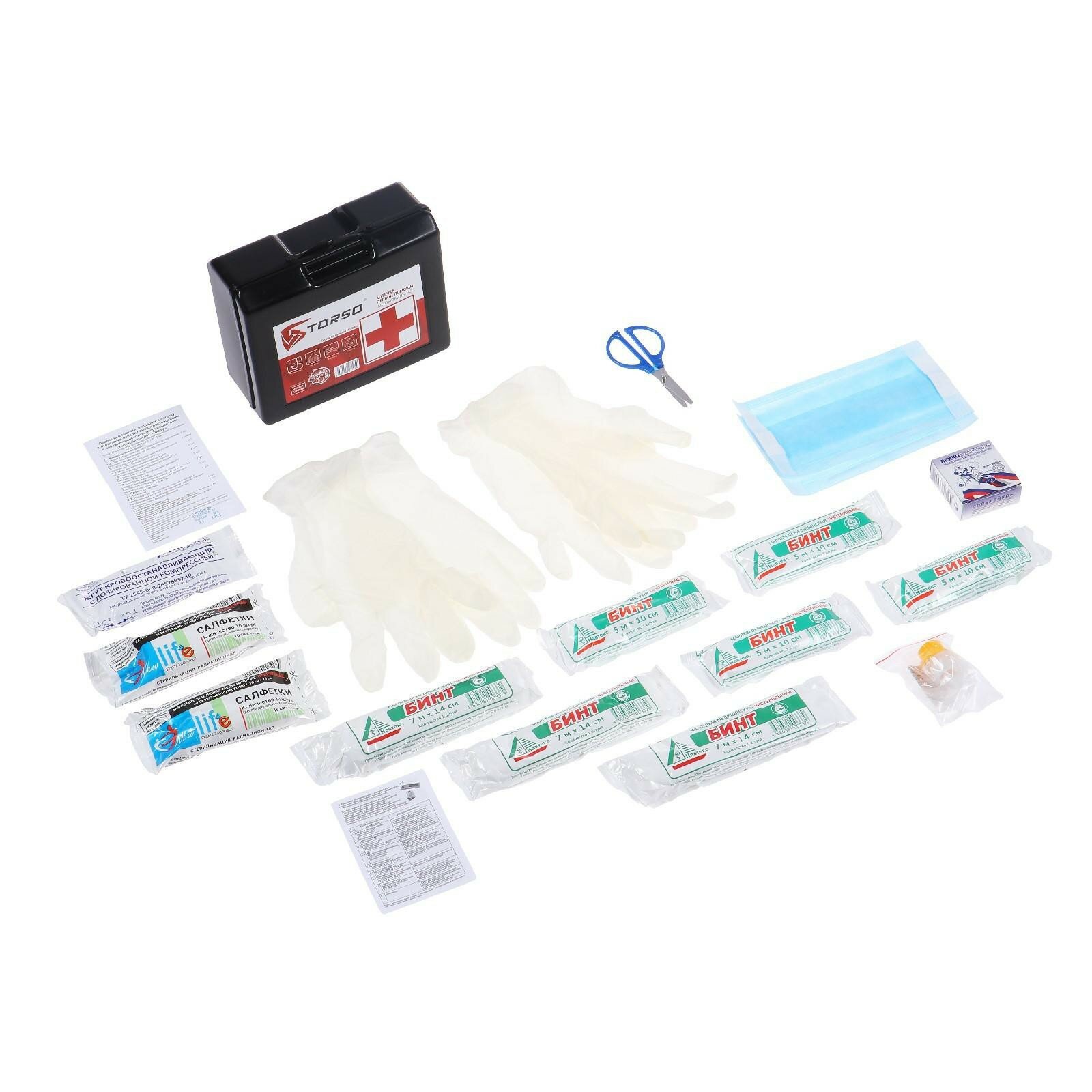 Аптечка автомобильная первой помощи TORSO, состав 2023-2024, по приказу №1080н для Техосмотра