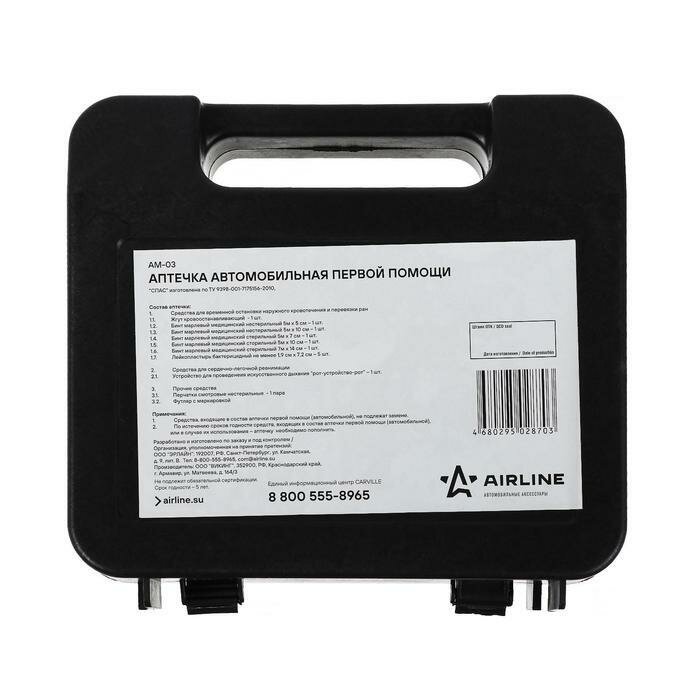 Автоаптечка AIRLINE "спас" пласт. футляр AM-03
