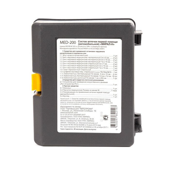 Автомобильная аптечка Autoprofi, пластиковый малый футляр . интересное: