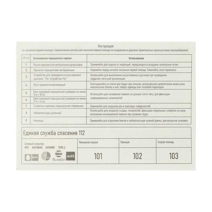 Аптечка автомобильная салют д/оказания первой помощи Арт. 3739 (Россия) 290г
