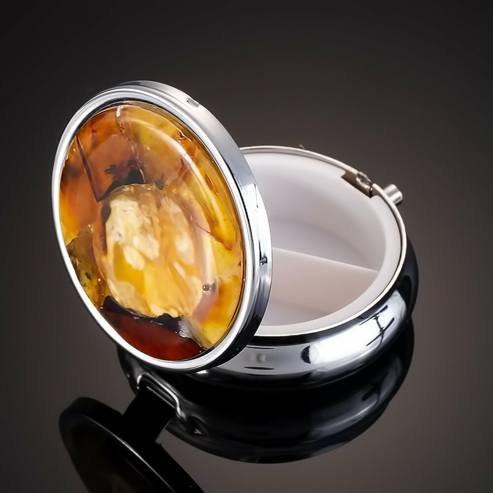 Купить Контейнер для хранения таблеток, украшенный натуральным янтарем