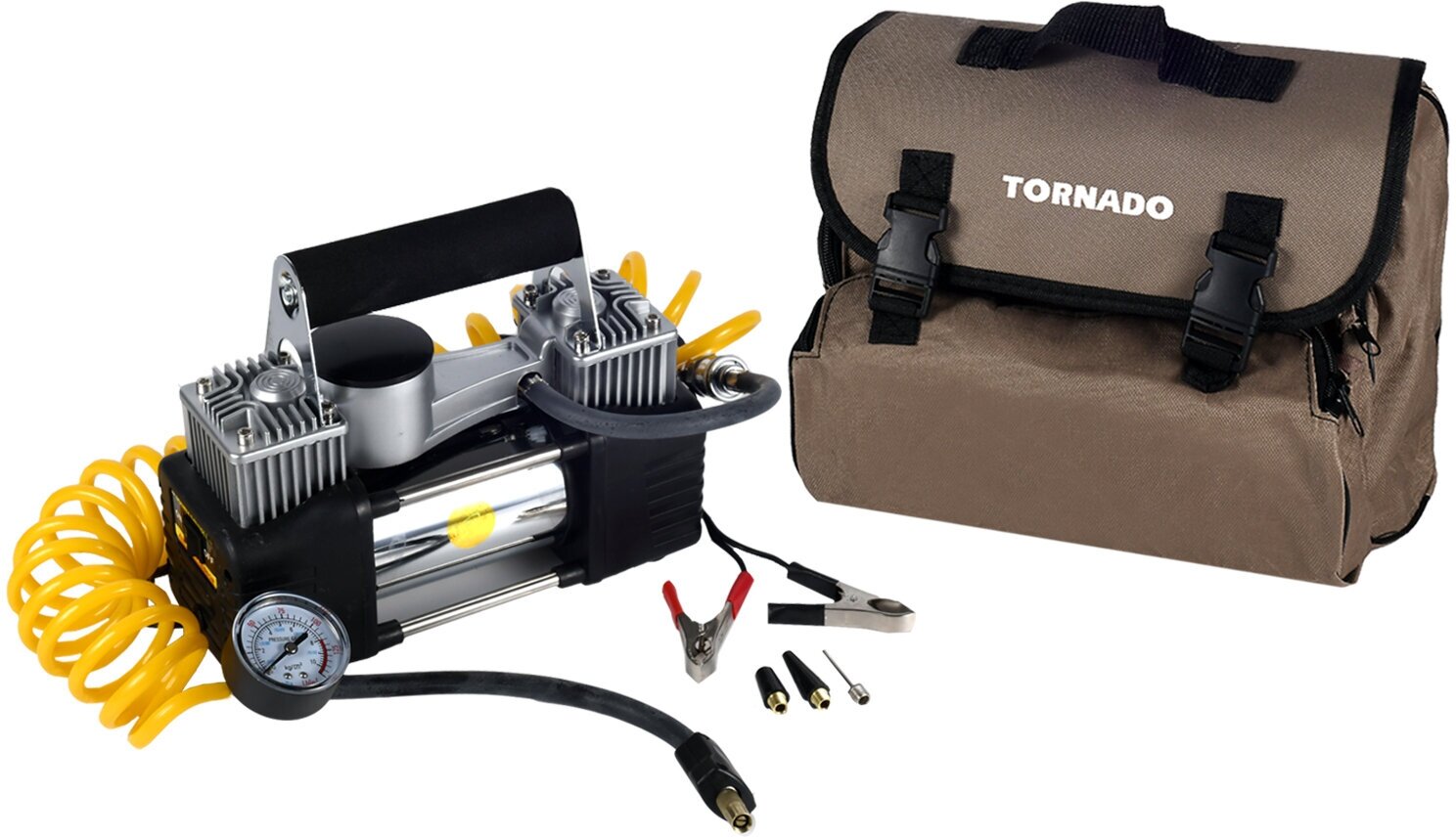 Автомобильный компрессор двухпоршневой с манометром Tornado 12.007 интересное: