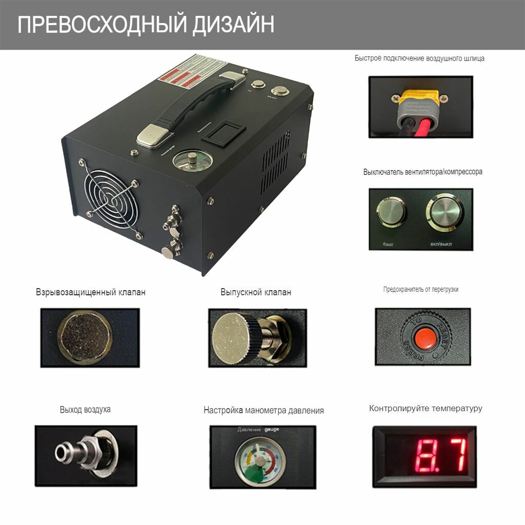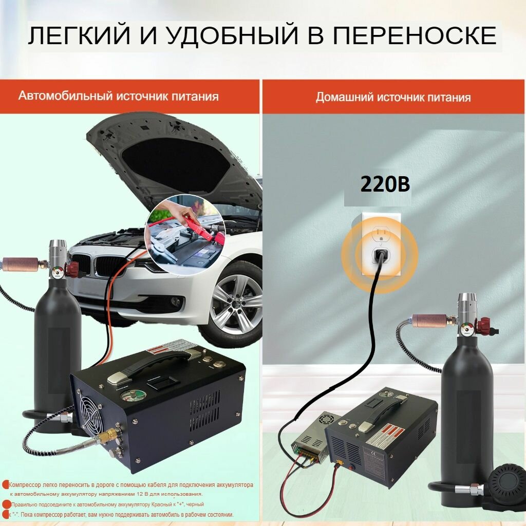 Компрессор высокого давления для PCP (220V, 12V, 300bar, 4500psi) интересное: