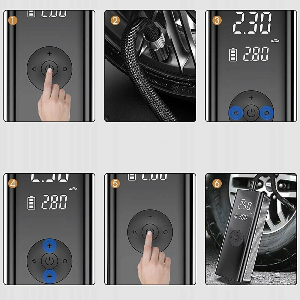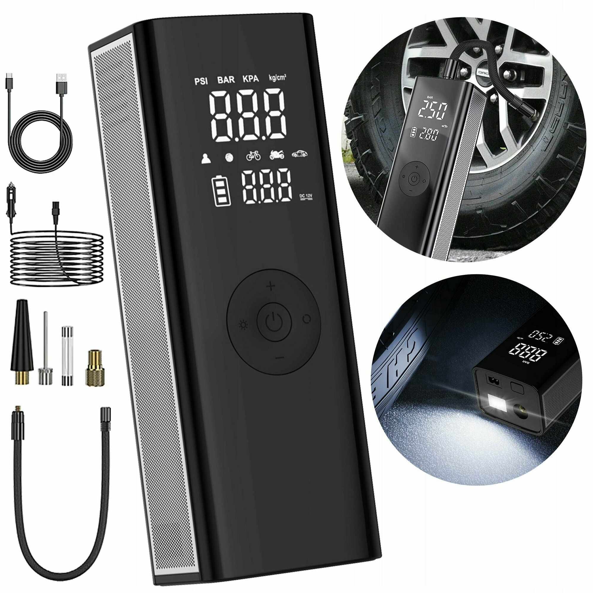Купить Портативный беспроводной компрессор CARSUN T2250, для автомобиля, мотоцикла, велосипеда, 4 насадки, с фонариком