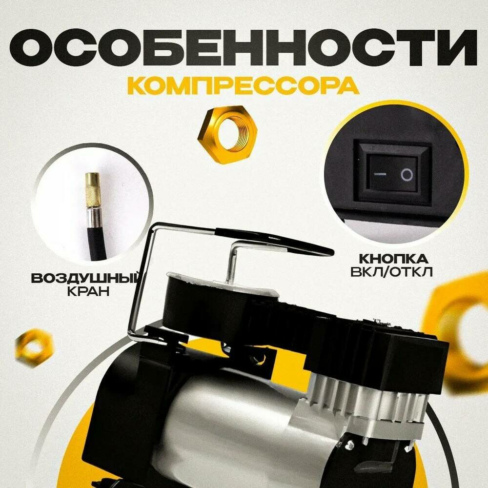 Автомобильный одноцилиндровый компрессор TAKARA с манометром (цвет - серебро), Насос для подкачки шин,35 л / мин, 12V интересное: