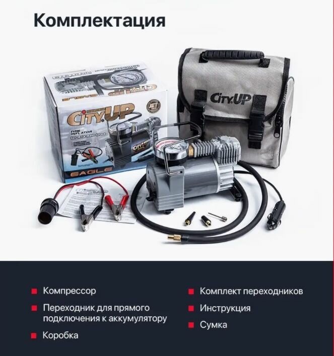 Ниже Вы можете прочитать отзывы на Компрессор автомобильный CityUP AC-582 Eagle, 40л/мин., ознакомится с подробными характеристиками, посмотреть интересные обзоры и фотографии на Компрессор автомобильный CityUP AC-582 Eagle, 40л/мин..