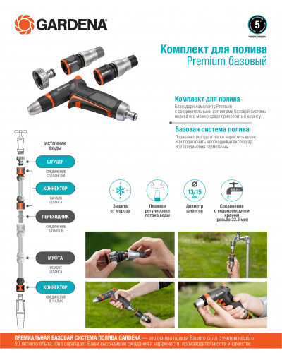 Комплект для полива Gardena "Premium", 5 предметов. 18298-20.000.00