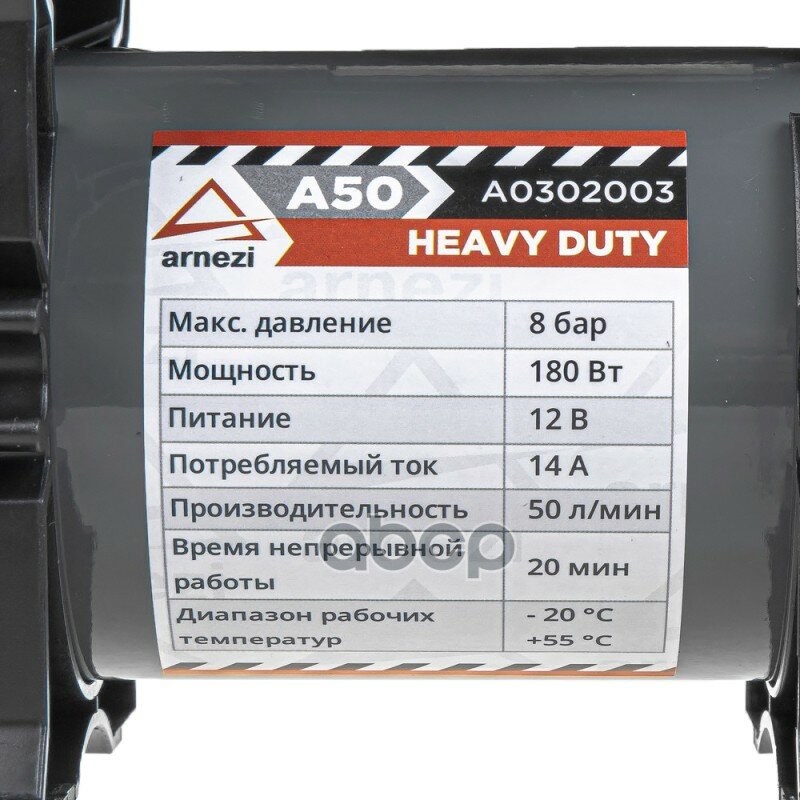 Компрессор Автомобильный Arnezi A50 Heavy Duty 8 Бар, 50 Л/Мин, 180 Вт, A0302003 ARNEZI арт. A0302003