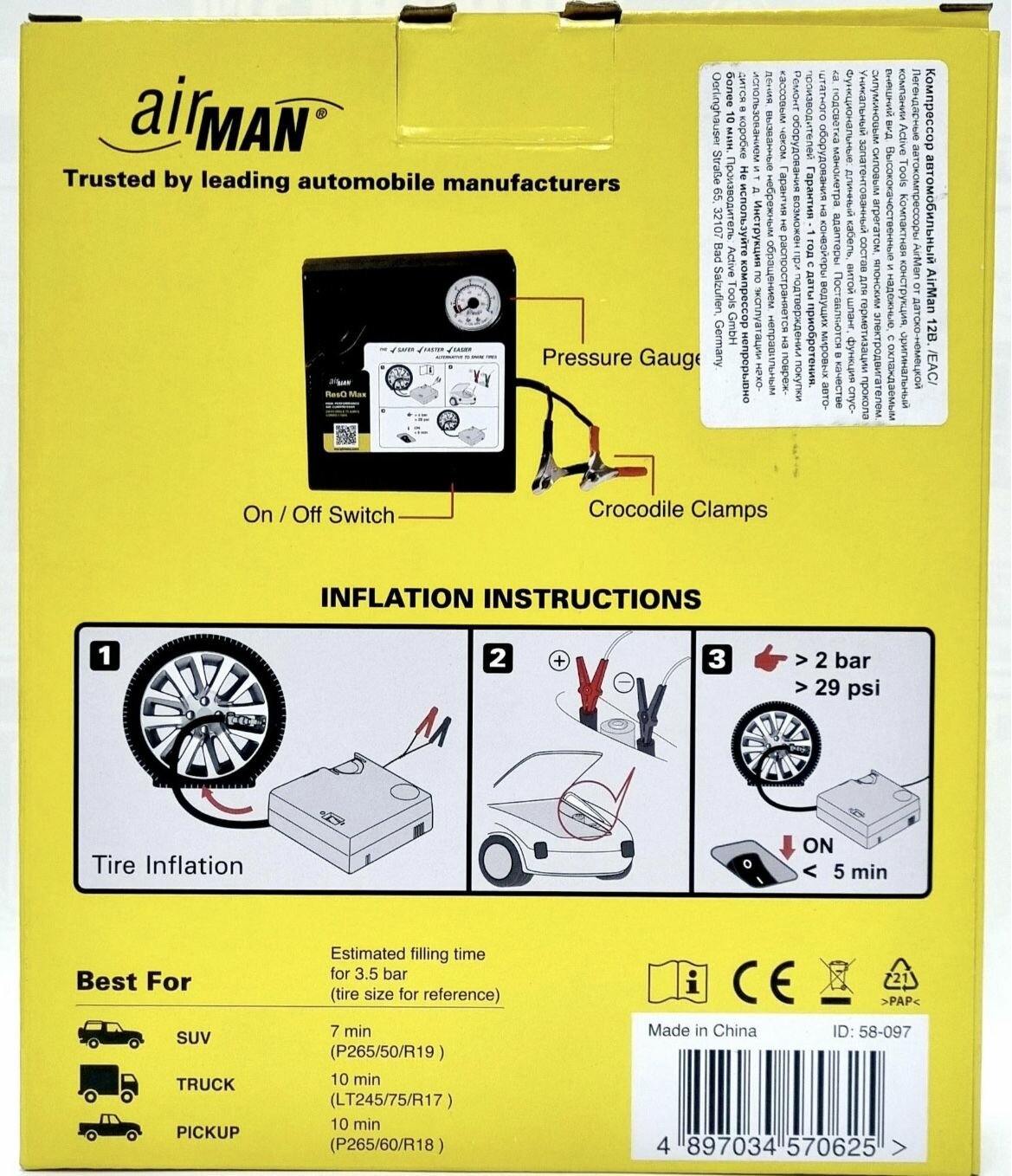 Компрессор автомобильный AirMan ResQ Max арт. 58-097, 240W, 71 л/мин., поршневой автокомпрессор, насос интересное: