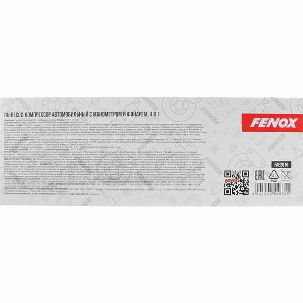 Купить Пылесос-компрессор, с фонарем и манометром, 12 В, 10 А, 120 Вт, FAE2016