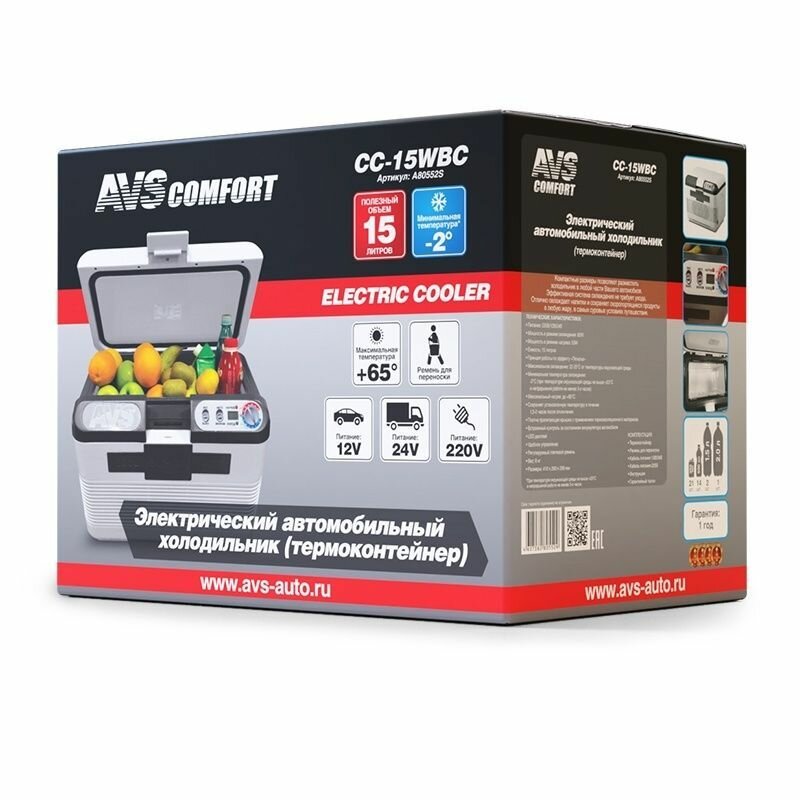Автомобильный холодильник AVS CC-15WBС 15л 12V/24V/220V (программное управление) интересное: