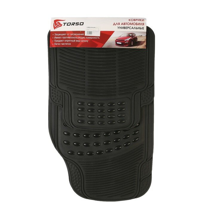 Купить Коврики автомобильные TORSO, резина, 70×44 см, 44×43.5 см, черный, набор 4 шт