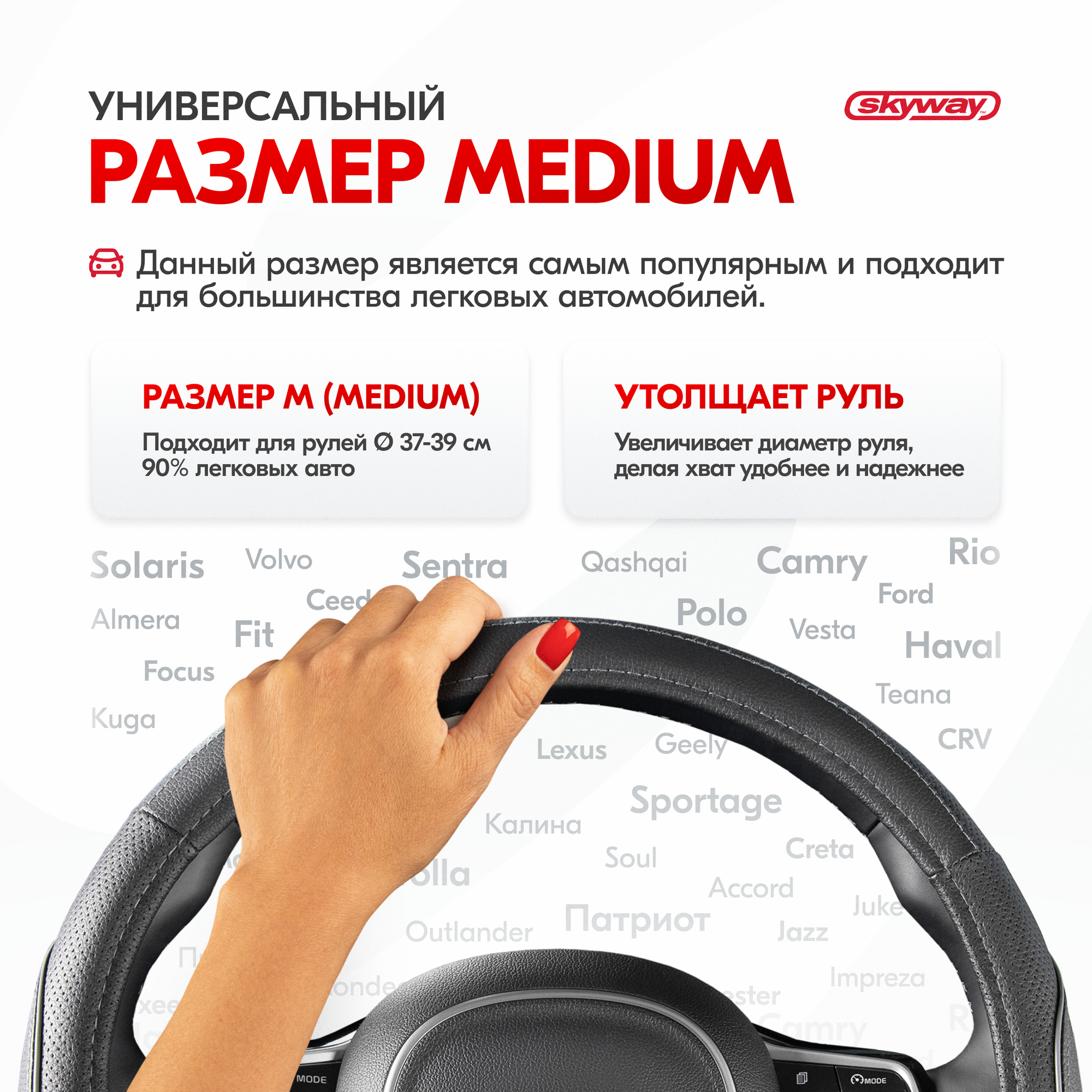 Оплетка на руль Combo-14 SKYWAY M (37-39) черный экокожа, S01102477