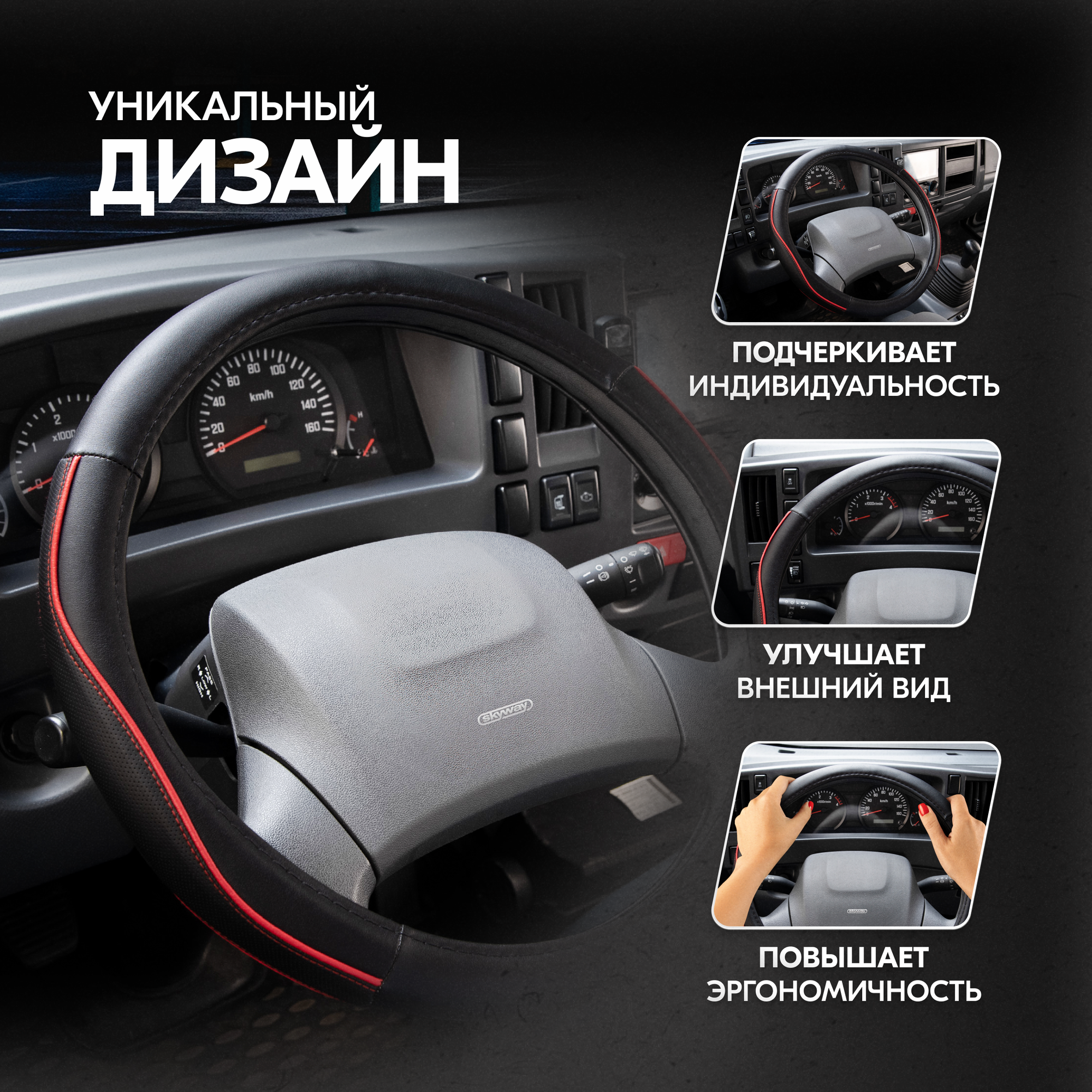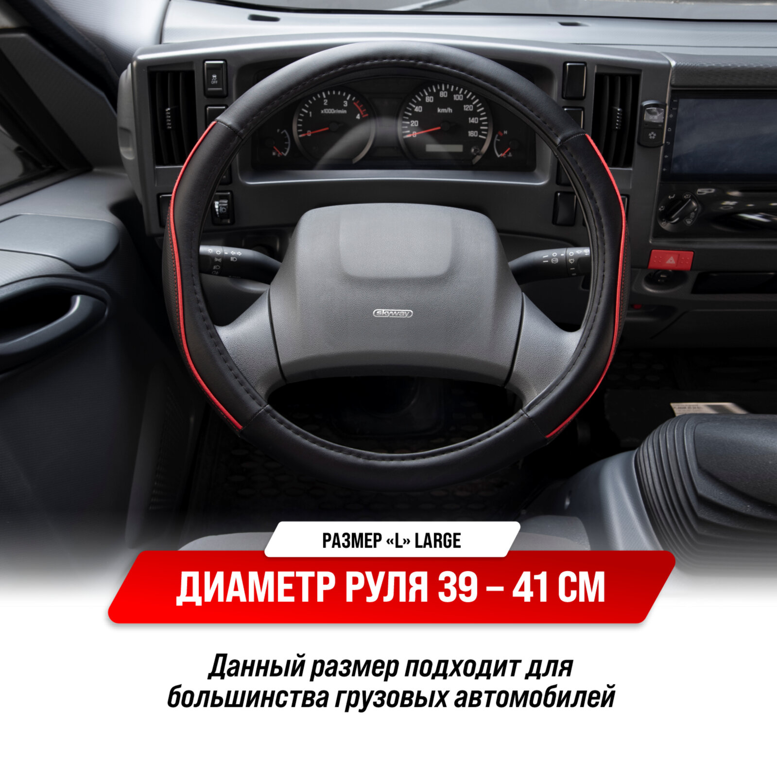 Оплетка руля SKYWAY Combo-7 L 39/40/41 см, экокожа, черно-красная, S01102304
