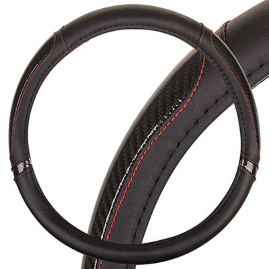Оплетка CAMC AH3251-2 / Чехол на руль экокожа черный / бордовый (каркасный) 44-45 см
