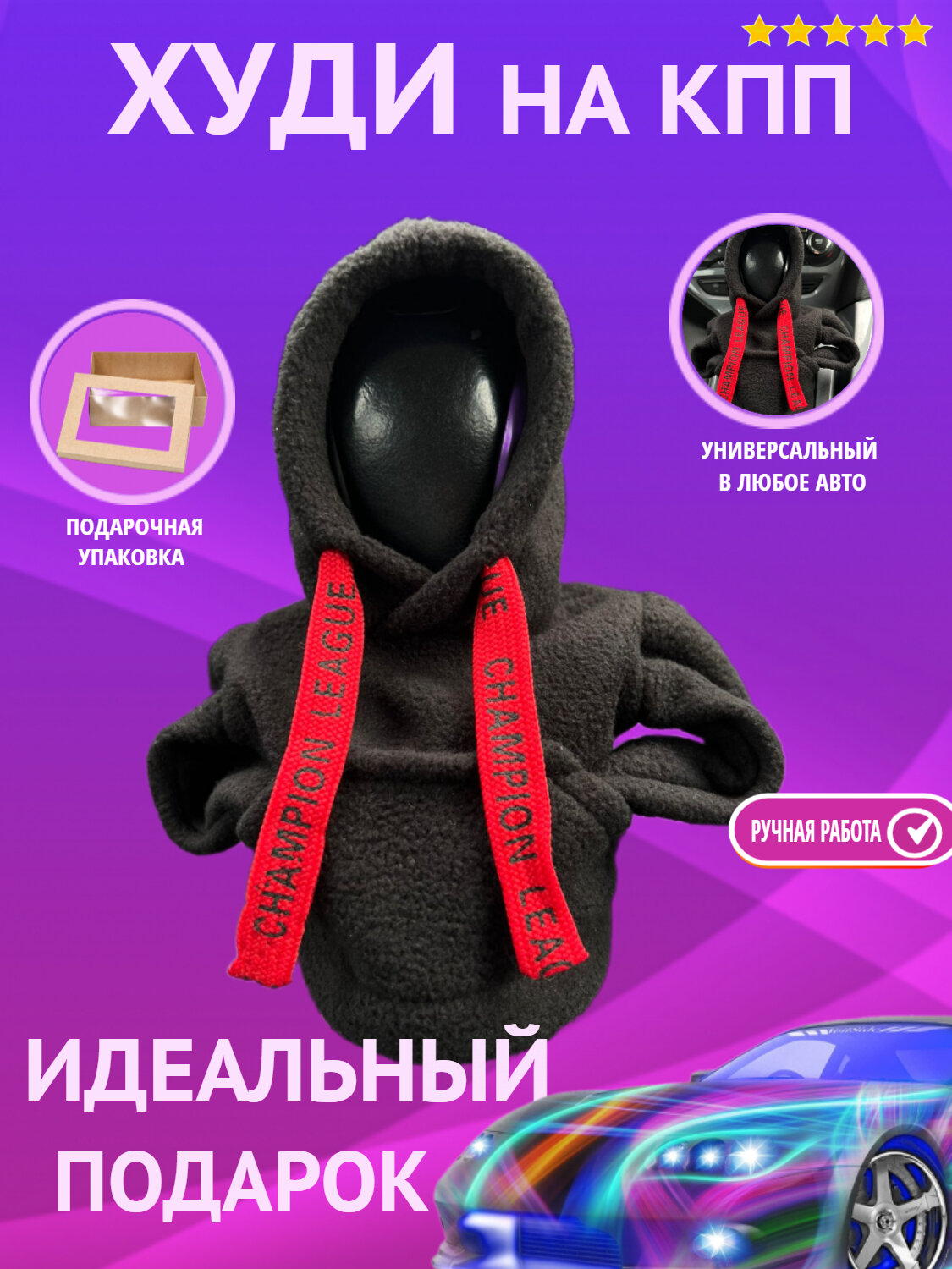 Купить Универсальный аксессуар/чехол/худи/толстовка Autozoom на рычаг/ручку коробки переключения передач (для КПП), цвет черный 01, флис