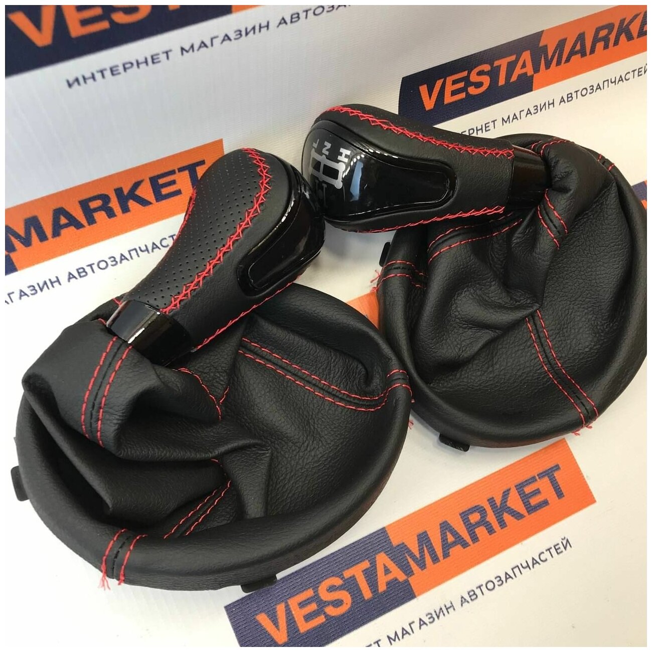 Купить Ручки КПП и раздатки с чехлами в стиле Веста для Шевроле Нива 2123 красная нить