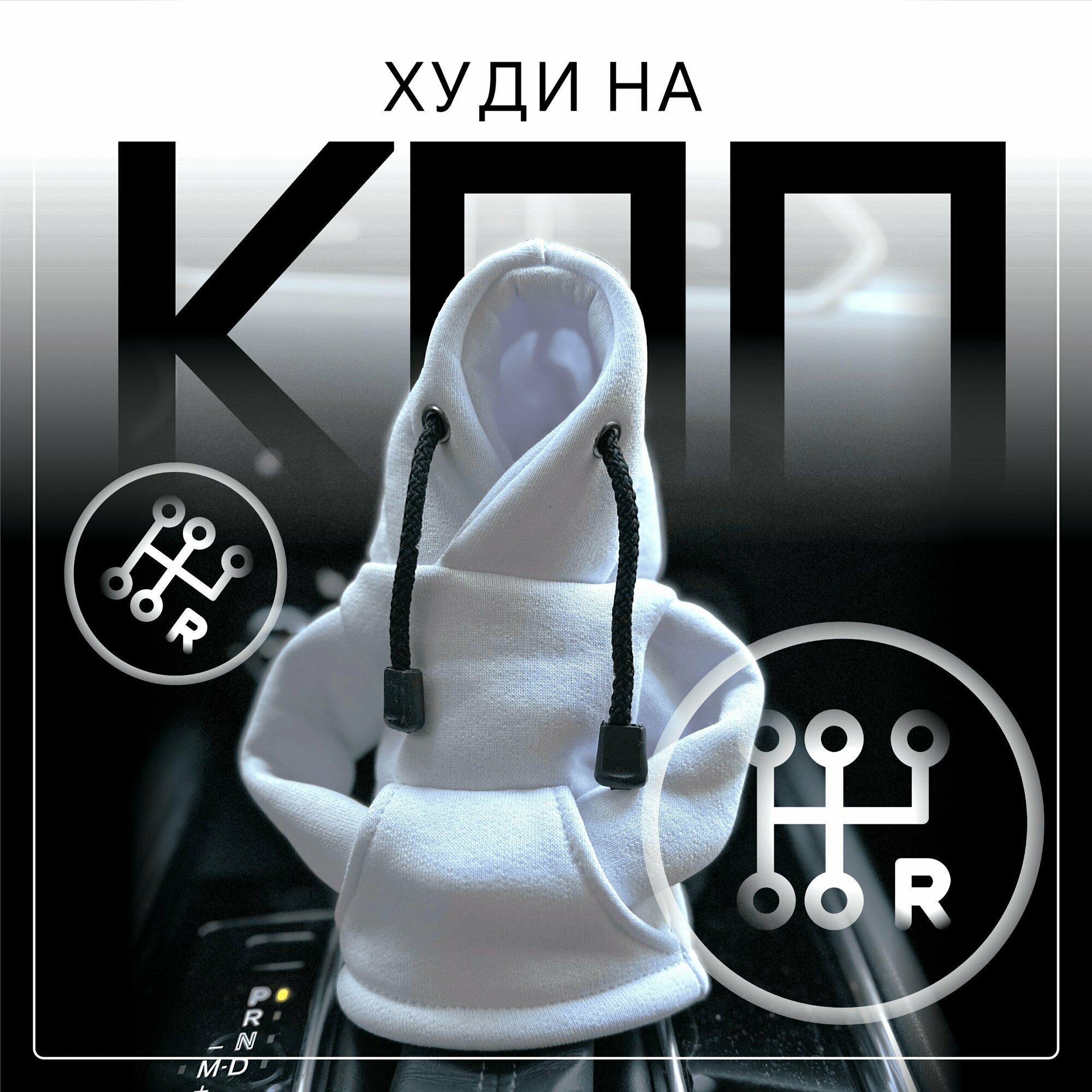 Универсальный чехол на ручку КПП , аксессуар чехол-худи, бело-черный