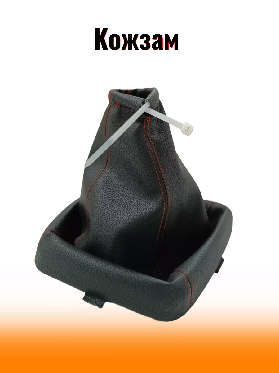 Купить Чехол коробки переключения передач (КПП), пыльник на ВАЗ-11183, ВАЗ-11193 Лада Калина-1 (Lada Kalina-1) -черный с красной строчкой "кожзам"
